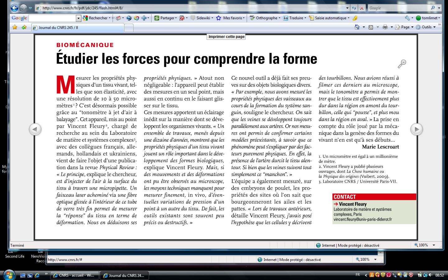 Une interview déjà ancienne. dans le journal du CNRS. |