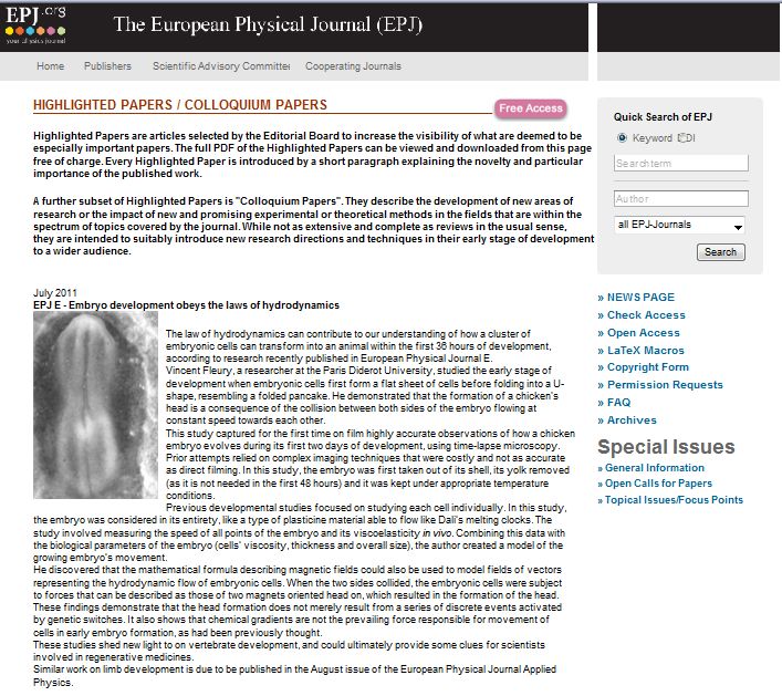 Une conférence récente (avril 2017) très complète avec beaucoup de films faite à L'Université de Bretagne Sud. Une interview récente sur la Radio Suisse Romande. Une émission de radio sur idfm. Une conférence donnée à Toulouse le 15 octobre 2012 pour la séance inaugurale de la Société Française de Biomécanique. Une conférence grand public "Espace Pierre-Gilles de Gennes" donnée le 6 février 2012. Un séminaire présenté Laboratoire Jean Le Rond d'Alembert le 2 février 2012. Un cours présenté au GDR Méphy (ESPCI, 28 Juin 2011), sur les vaisseaux sanguins. Un cours présenté au GDR Méphy (ESPCI, 28 Juin 2011), sur les vaisseaux sanguins. Un cours organisé avec Jean-Pierre Henry à MSC. Un séminaire présenté à l'Ecole Normale Supérieure, LKB dans le séminaire de biophysique. (8 Avril 2011). Un séminaire présenté à l'Institut de Recherche sur les Phénomènes Hors d'Equilibre (IRPHE Univ. Aix-Marseille I et II). (28 janvier 2011). Une conférence faite à Okasakaï au congrès de la société Japonaise de Biochimie Moléculaire. Une conférence faite à l'Ecole Polytechnique powerpoint téléchargeable (septembre 2010). Une présentation courte faite aux Journées de la matière Condensée,mini-colloque "biofluidique" powerpoint téléchargeable (août 2010). Une conférence faite à l'Institut Curie powerpoint téléchargeable (avril 2010). Une conférence faite à Rennes dans l'école thématique Systèmes complexes le 19 octobre 2010. Téléchargeable, en streaming video (attention ça demande un plugin java spécial à charger, voir explications sur le site). ça dure environ 2 heures, et c'est très complet. Le pdf correspondant est également accessible (pour avoir les slides nettes, sur la vidéo, c'est flou). Emissions de radio podcastablesUne conférence faite à Namur téléchargeable, même que y a le son. Allocution en l'honneur de Benoît Mandelbrot (Festival Pariscience 2009, Grand Amphithéâtre du Muséum d'Histoire Naturelle de Paris). Une conférence faite à l'Institut Cochin téléchargeable, même que y a l'image et le son (requiert Quicktime ou logiciel équivalent). Une conférence faite à l'IRISA dans le cadre de l'ACI Vicanne dans cette conférence, je précise à la fin pourquoi le champ d'orientation cellulaire induit un sens à l'évolution. Une conférence faite à l'Institut of Pure and Applied Maths de UCLA le powerpoint est ici , et le son là . Une conférence faite dans le colloque "chaos et déterminations" le powerpoint est ici , et le son là (attendre un peu, c'est long à charger 50Mo). Une conférence faite à l'ENS de Cachan, dans le "colloque Modélisation en physiologie", intitulée, "Combien de paramètres pour fitter un éléphant". Une conférence faite à la Maison des sciences de l'homme, le 14 Avril 2009 intitulée, "Une explication physique de l’origine et de l’évolution des vertébrés tétrapodes (dont l’homme), basée sur les premiers principes : principe de Curie, loi de Newton" ". Le résumé de cette conférence. A lecture at the Max Delbrück Centrum, Berlin, entitled "Hydrodynamic effects in development and evolution or : does evolution follow a streamline?" Une conférence faite à Toulouse, dans le cadre de la Novela 2009, intitulée "Convergence des artistes et des biologistes vers un archétype, et relation avec l’origine de l’homme" . Une conférence faite au muséum de Toulouse, dans le cadre de l'année Darwin 2009, organisée par le GREP "De l'oeuf à l'éternité" . Affiche d'une conférence faite à l'Institut de Mécanique des Fluides de Toulouse, intitulée "Effets hydrodynamiques dans la morphogenèse animale : de l'embryogenèse à l'évolution (ou : l'évolution suit-elle une ligne de courant?)". Une Interview pour le journal du cnrs. |