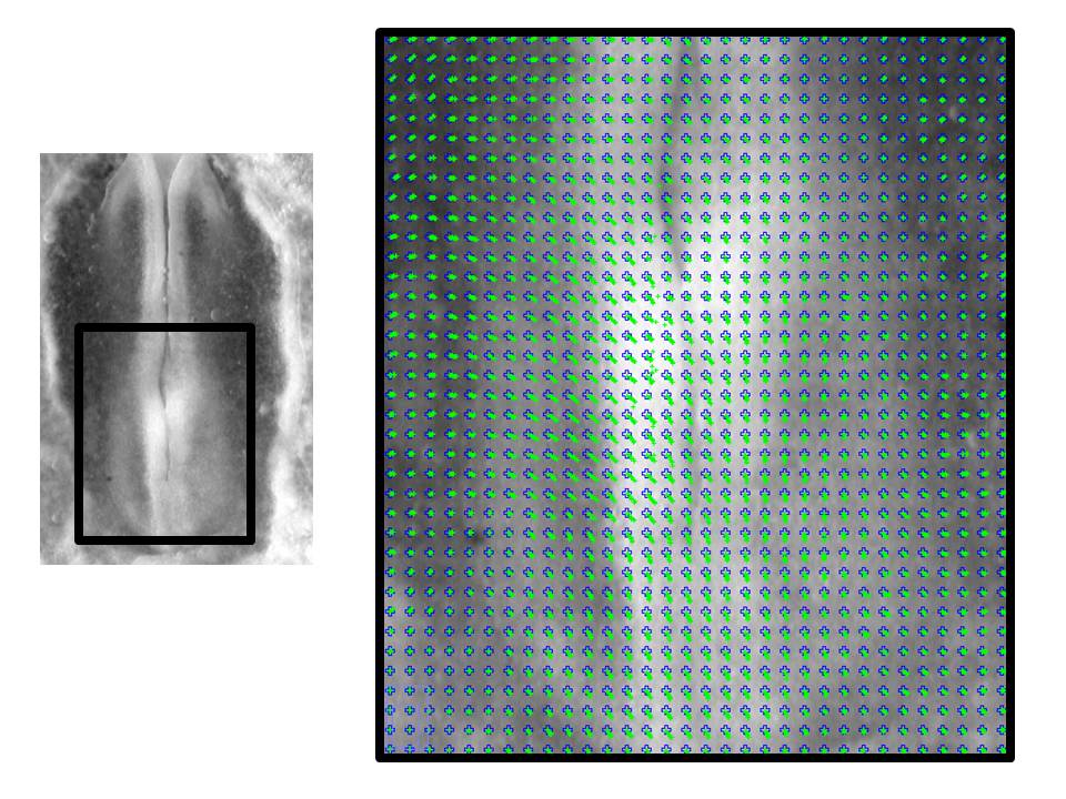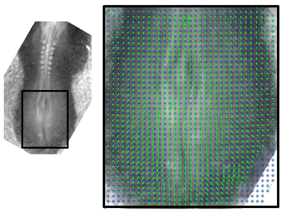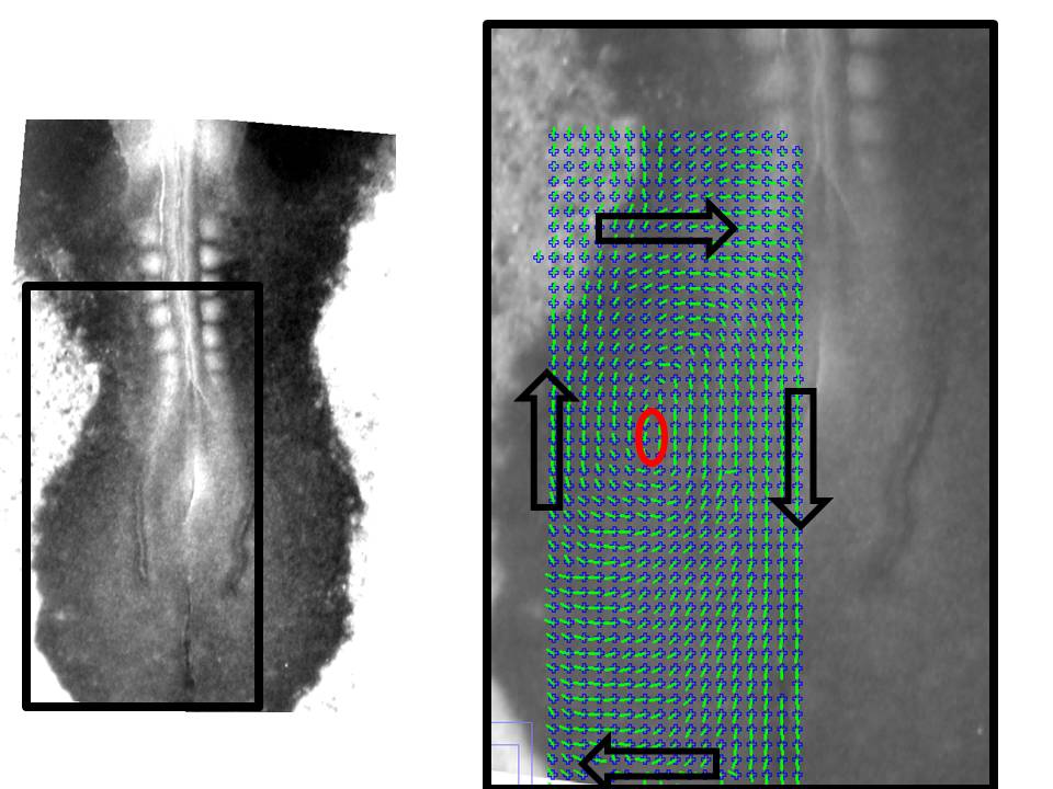 Recherches en cours : imagerie in vivo des tourbillons pendant les premiers stades de la morphogénèse, analyse des alignements de cellules.
