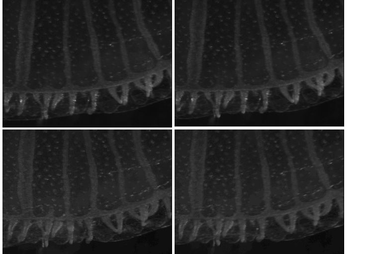 | Lorsque j'étais en Bretagne, j'avais monté une collaboration avec la Cité de la Mer de Cherbourg (grand Merci à toute l'équipe de Pierre-Yves Bouis, pour son extraordinaire travail de zoologie marine et sa disponibilité), pour l'étude de la méduse Aurelia Aurita. NB ces images sont obtenues en mode shadowgraph, qui rend un contraste splendide dans les méduses. | ![]() |