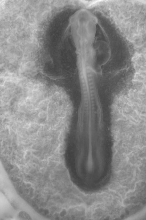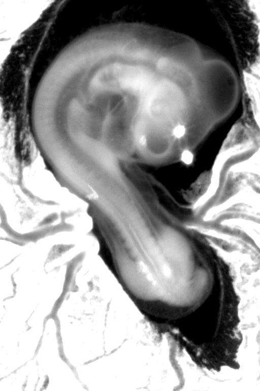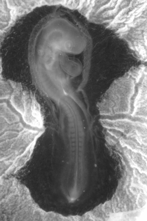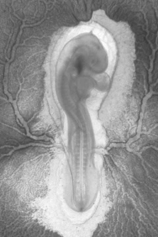 General remarks : Transmission view, the vessels of the yolk sac are visible Personal tags: Emb 81.