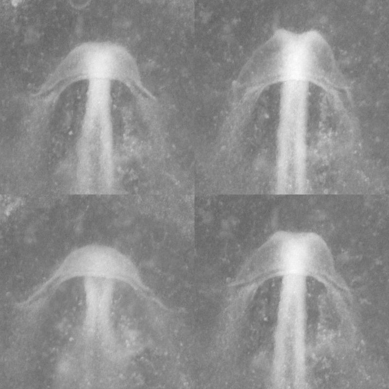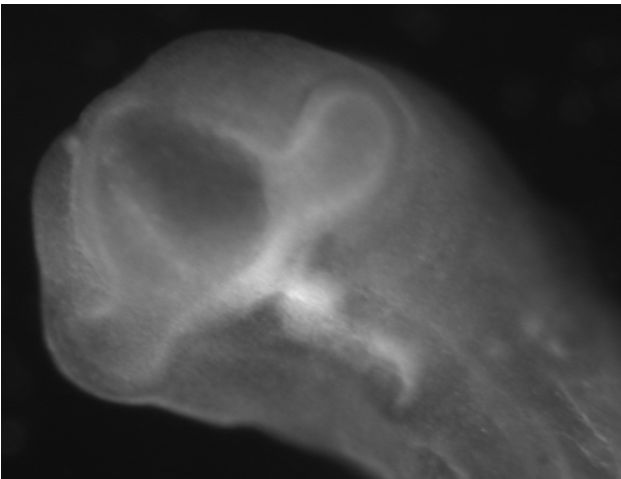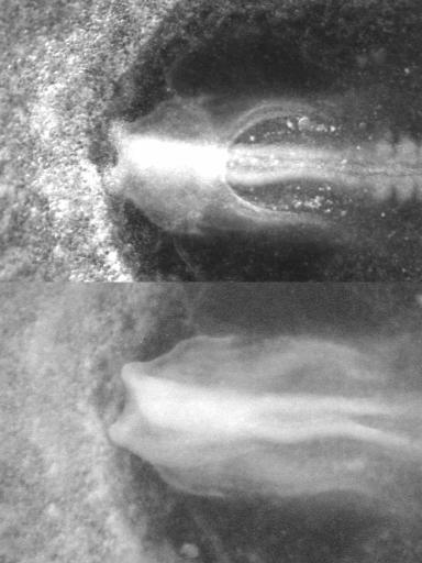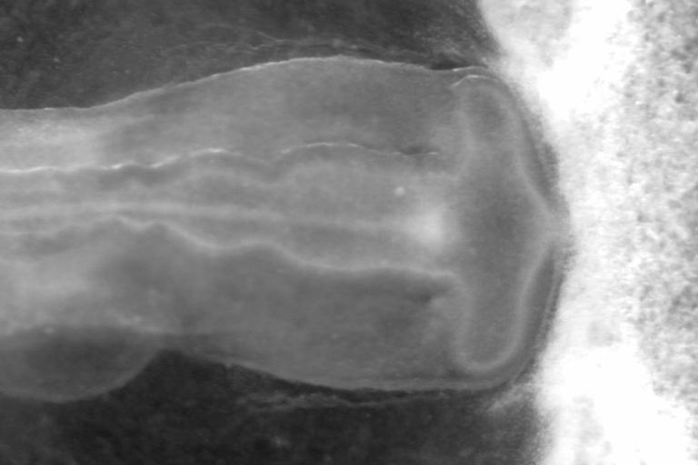Stage : Formation of the optic cupulas. Magnification : X6. Camera: Watec NetB, 768x512 pixels. remarks of general interestThis film shows the early stage of cupulas evaginations
