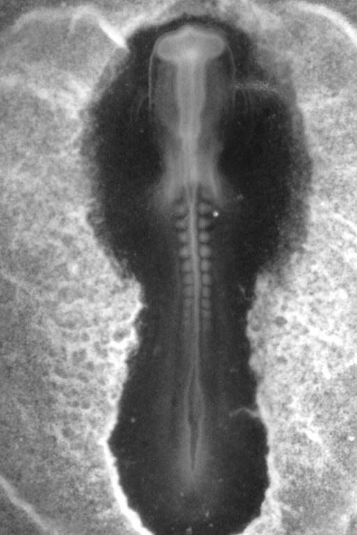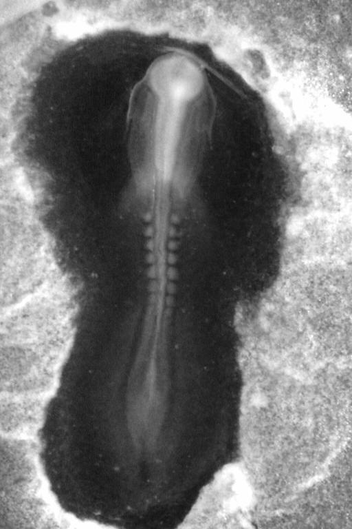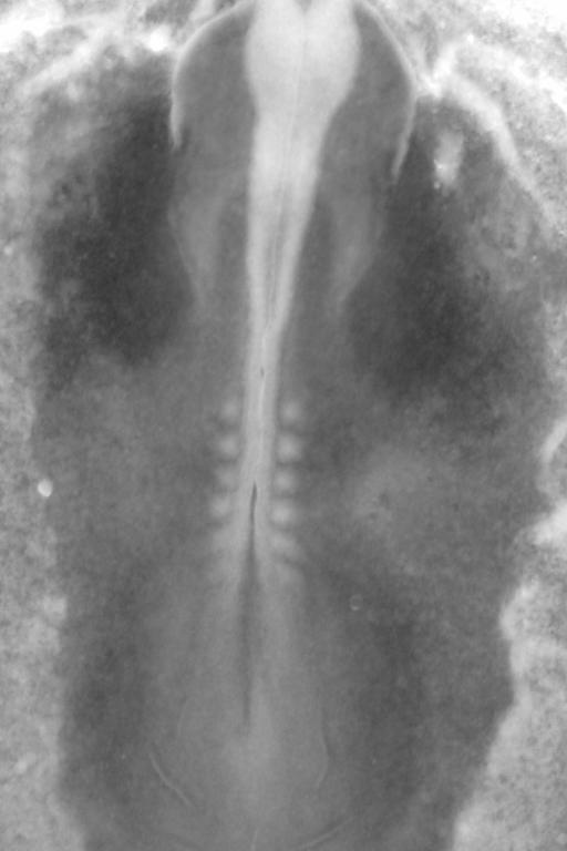 as seen from underneath. One distinguishes clearly the progression of the front of mesoderm. Personal remarks : Emb 156.