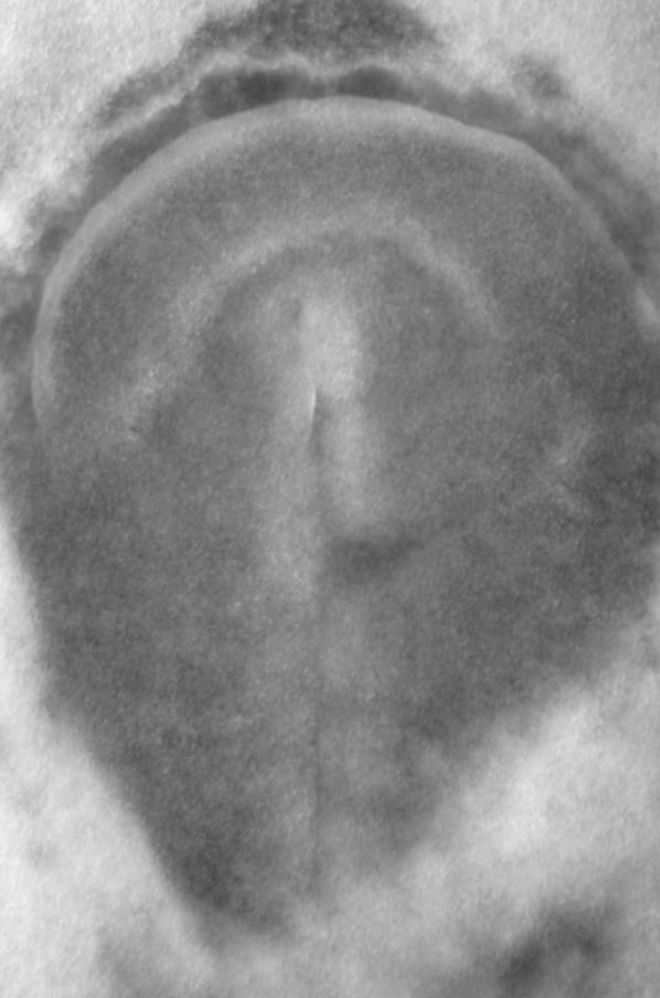 Same embryo as previous one. A close up view of the front, as observed from atop. The film