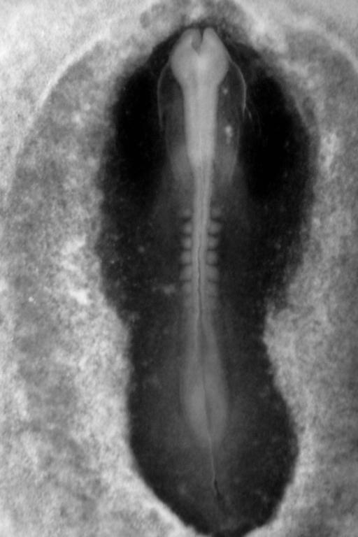 Same embryo as previous one : the front is seen in close up view, from underneath.