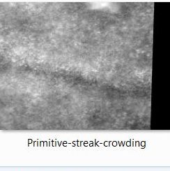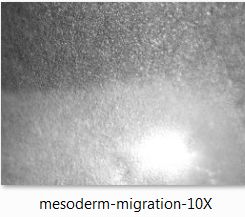 Remark: Close up view (X10) showing the flux of cells springing inside the primitive streak.