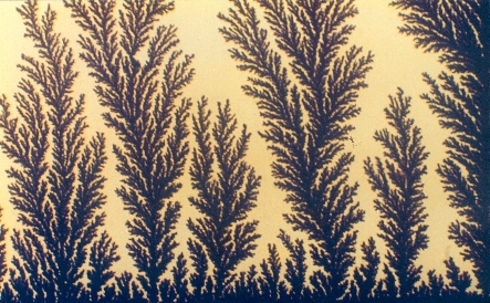Ce type de physique aboutit souvent à des formes fractales, comme l'arborescence (réelle) ci-dessous :