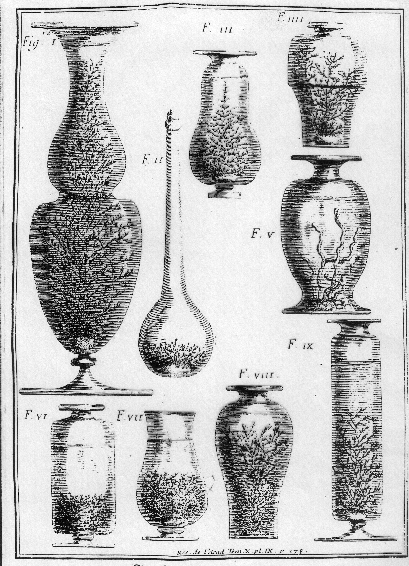 Légende: On verra ci-dessus une gravure de Homberg, chimiste de la fin du dix-septième siècle. On peut visiter une galerie complète de planches anciennes, pour se convaincre de l'ancienneté et de la profondeur du questionnement sur ces arborisations sur le site http://pmc.polytechnique.fr/vf, où cet exposé sera également posté Accéder directement aux vieilles gravures