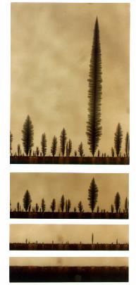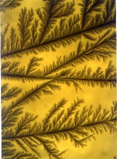 | Croissance arborescente de cuivre obtenue en croissance électrochimique très rapide (quelques minutes). Image photo d'une croissance complète (largeur trois centimètres) | ![]() |