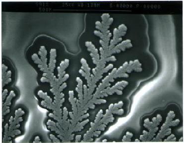 | Croissance arborescente de cuivre planaire, dans le régime presque couvrant. (Largeur trois millimètres env.) | ![]() |