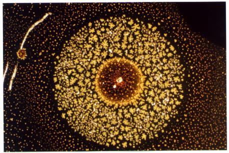 | Oxydation d'un film d'aluminium, sur du verre, autour d'un défaut ponctuel. (Largeur 0,5 millimètre env.) | ![]() |