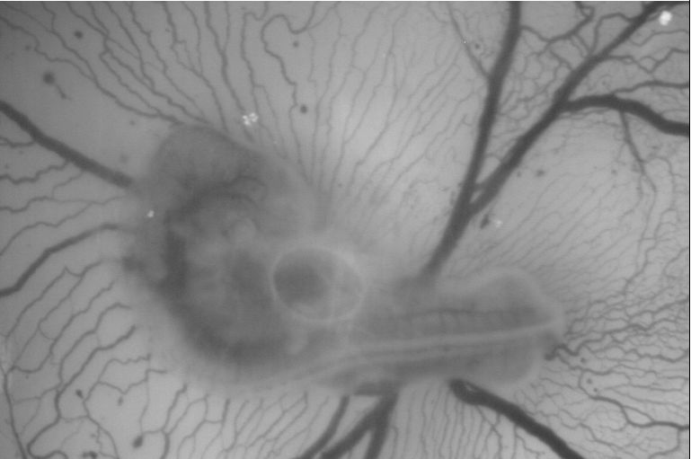 Photo d'un jeune embryon de poulet, au départ d'un film en Time-Lapse (stroboscopie).