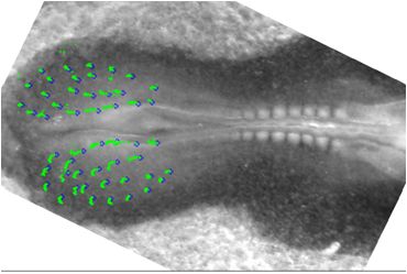 | PIV tracking of the movement, please notice that the vortex has moved even more caudally. . | ![]() |