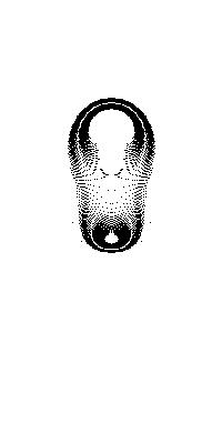 | This is the animation of a blastula flowing in an extension flow. The purpose of these animations is to show that with an analytical expression (exact mathematics, see maths page) containing very few parameters (here only the length of the pulling segments and the position of the hyperbolic point), one gets a flavour of the animal formation vey much reminiscent of what is observed, in terms of topology, and embryo "fluidity"). Notice especially that the brain and heart territories form horse-shoe shapes, as well known. The caudal (anal) opening closes completely. |