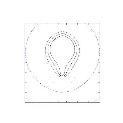 | This is the animation of a morula flowing in a moving quadrupolar flow. The animation shows, supposedly, the formation of the shoulders and hips. The calculation shows that the effect can be obtained very simply with a two parameters model : the position of the vortex cores away from the body axis (roughly the width of the chord), and the position of the hyperbolic point along the Antero-Posterior axis (the position of the navel). |