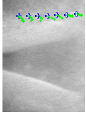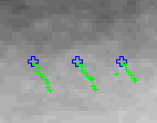 | Another animation of the evolution of the growth direction in the cranial area (lower magnification, the folds in the cranial area are visible). The animation shows the orientation of the tracks, taken for 10 minutes, each ten minutes between 0 and 50 minutes, around the closure of the folds. One clearly sees that there is a massive change in tissue flow direction, associated to the collision of the left and right half of the embryo. As a consequnce, the fold in the cranial area does not close (while the dorsal area does so). |