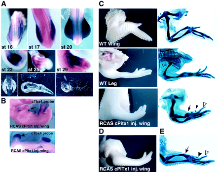 On the one hand, your observations on our paper are correct, the reversed flexure upon Pitx misexpression is limited to the wrist. (similar results have been obtained in the mouse–see Dev Biol. 2006 Nov 1;299(1):22-34. Pitx1 determines the morphology of muscle, tendon, and bones of the hindlimb. DeLaurier A, Schweitzer R, Logan M.)